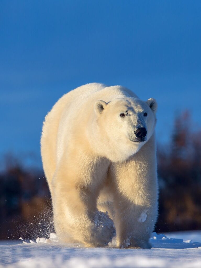 Polar bears inhabit the wider region, though sightings near the lake are rare. Grizzly bears, caribou, and wolves are more commonly seen.